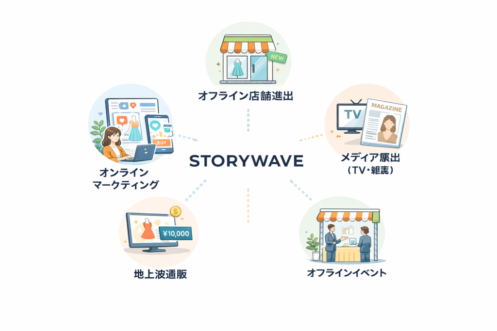 STORYWAVEは今後も、オンラインマーケティングにとどまらず、オフライン店舗、メディア、